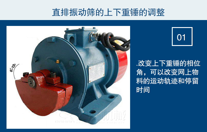 1.改變上下重錘的相位角,可以改變網(wǎng)上物料的運動軌跡和停留時間。為是篩機適應各種物料所需求的分離狀態(tài),如物料的分布,處理量、過網(wǎng)率等各種變化,應將它調(diào)整到最佳狀態(tài)。