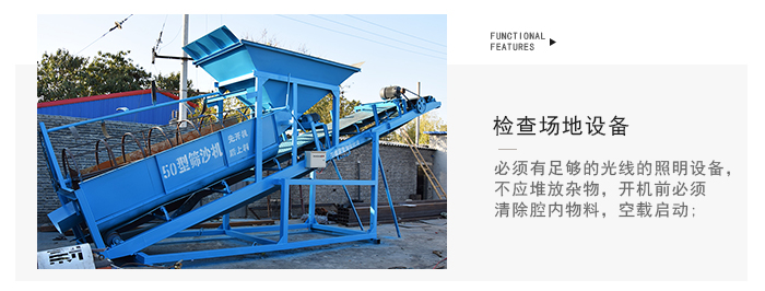 7.篩沙機工作場地不應堆放雜物,并必須有足夠的光線的照明設備