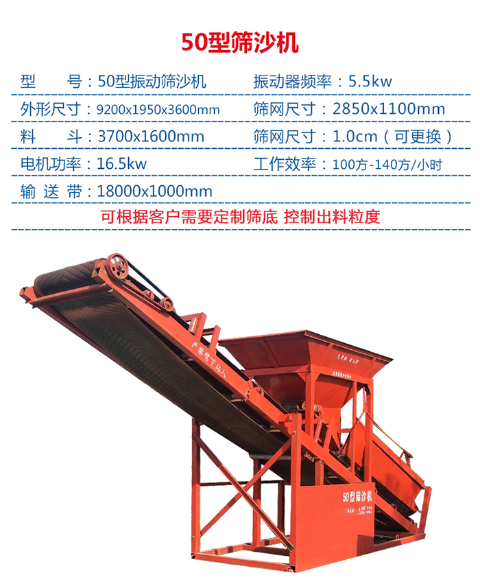 操作簡單,工作效率高,應(yīng)用在建筑行業(yè)與大小型沙廠的,結(jié)束了多年來用人工篩沙的歷史。依據(jù)自己的需要,可更換所需的篩網(wǎng),簡單易換、重量輕、便于,該機(jī)出沙率100%,不論干沙子還是濕沙,本機(jī)均能穩(wěn)定篩分,克服了由于沙子含水率高,人工難以篩分的時(shí)代。