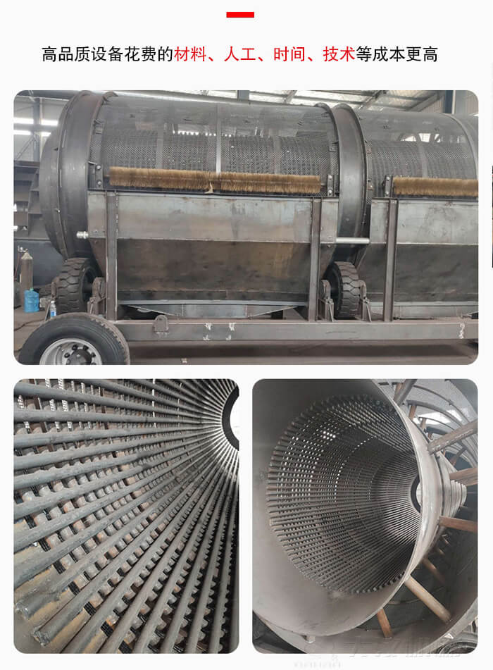 設(shè)備品質(zhì)是決定移動滾筒篩價格的主要因素之一,質(zhì)量越好的設(shè)備做工更精細(xì),選材更用心,所以花費(fèi)的材料、人工、時間、技術(shù)等成本更高,其市場價格則會更高,成本自然而然就更高,其價格也會更貴,但是后期使用中效果(包括、、產(chǎn)量等方面優(yōu)勢)也會更顯著,帶給用戶的利潤價值更高。